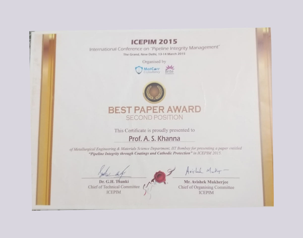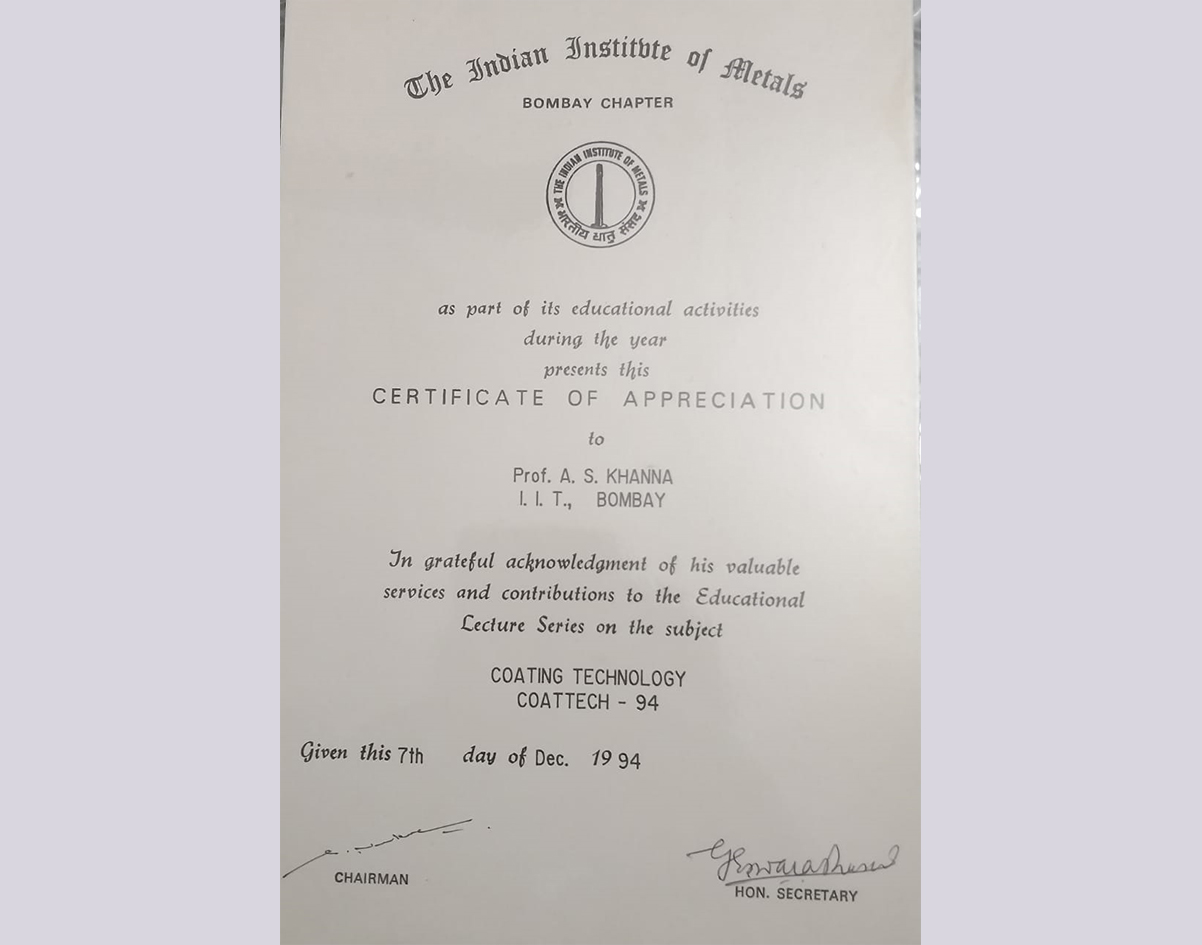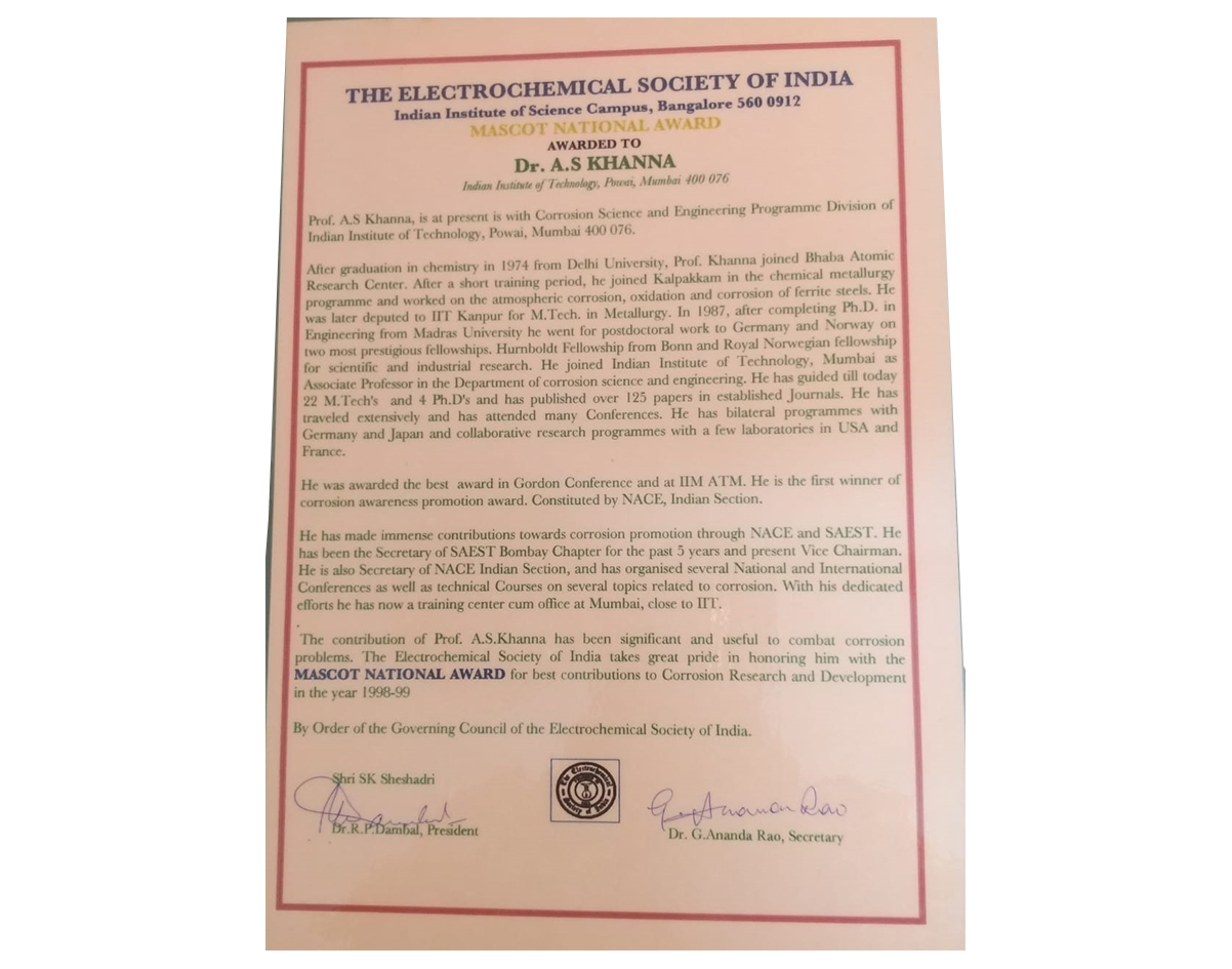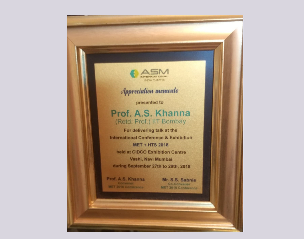 • - After working for more than 40 years in the field of Surface Engineering & Corrosion Protection,and having contributed so much to the subject, Prof.A .S.Khanna from IIT Bombay, www.askendowmentfund.com