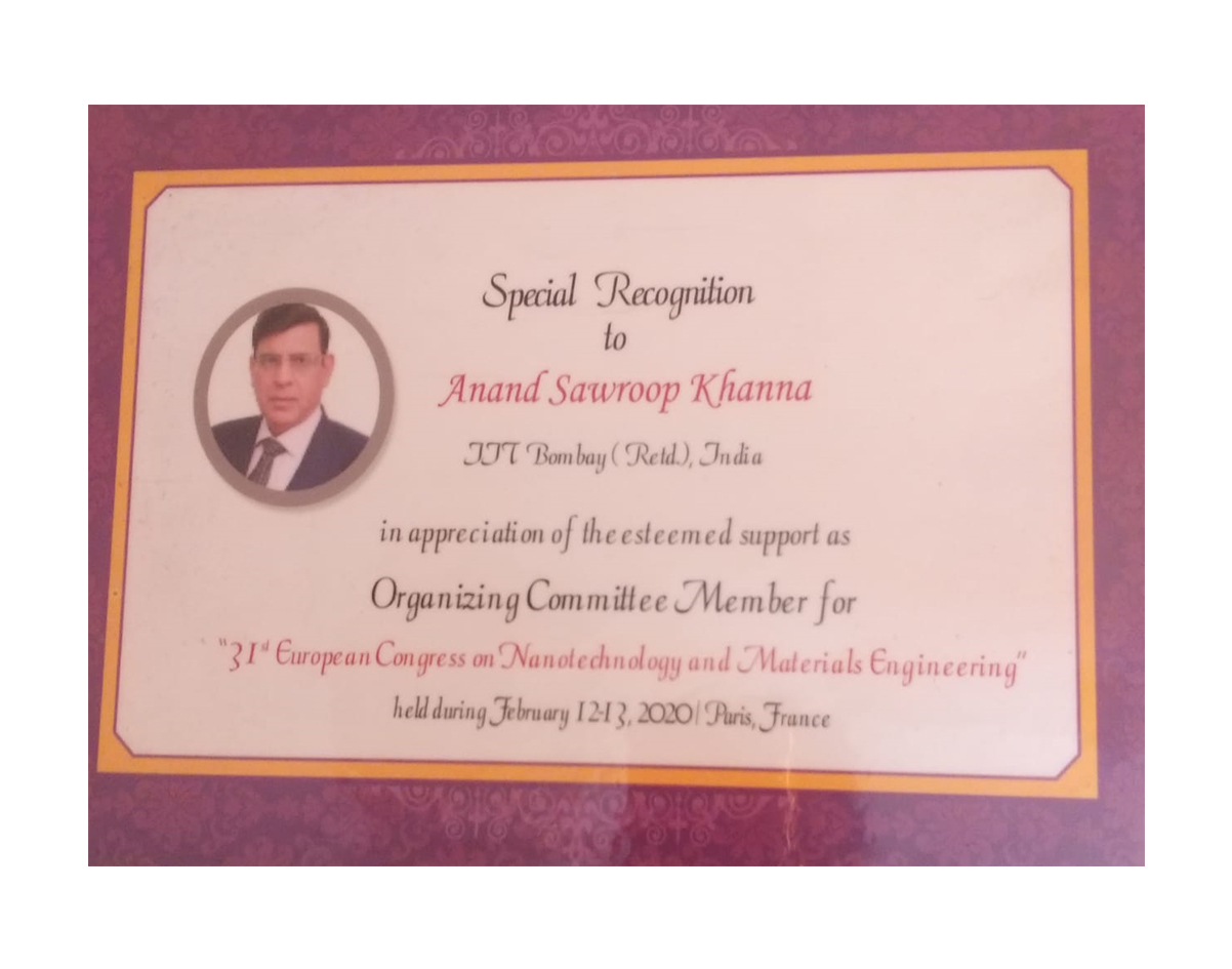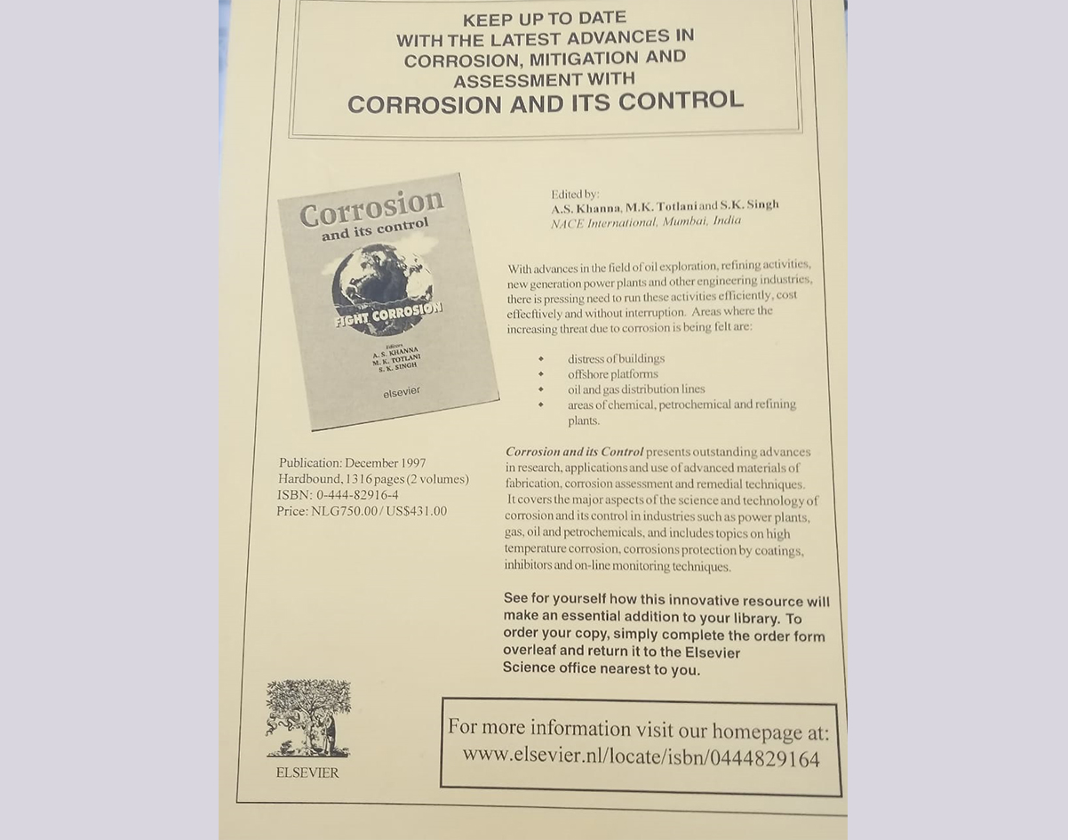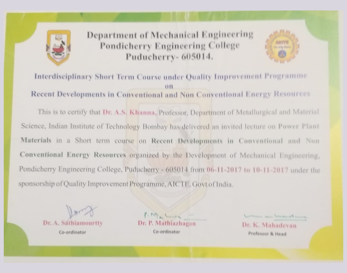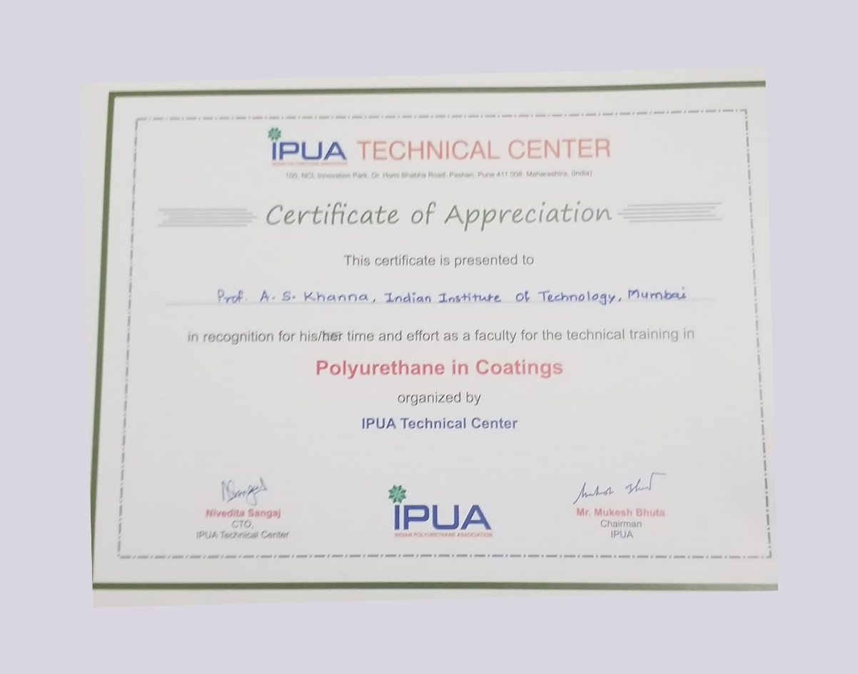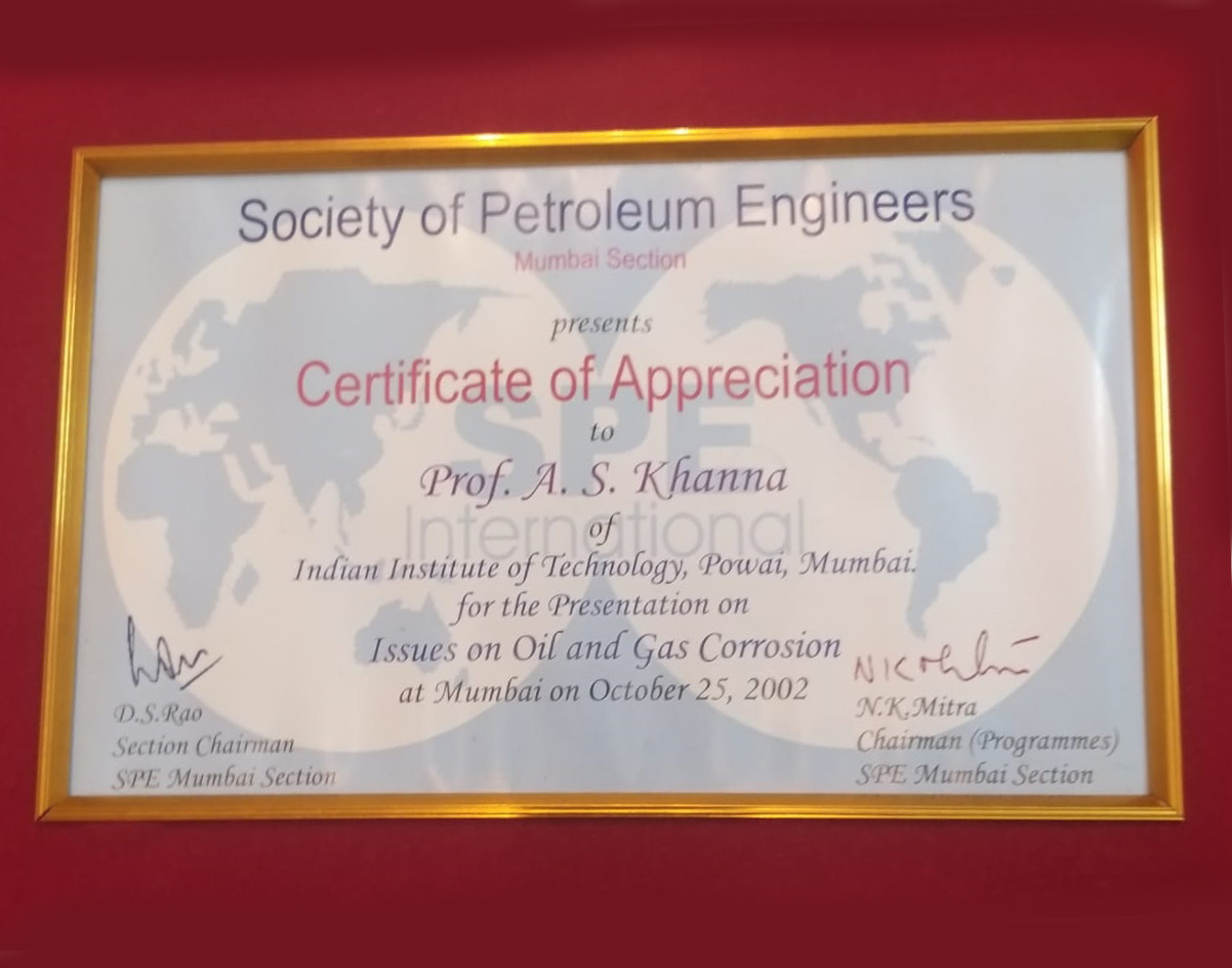 • - After working for more than 40 years in the field of Surface Engineering & Corrosion Protection,and having contributed so much to the subject, Prof.A .S.Khanna from IIT Bombay, www.askendowmentfund.com