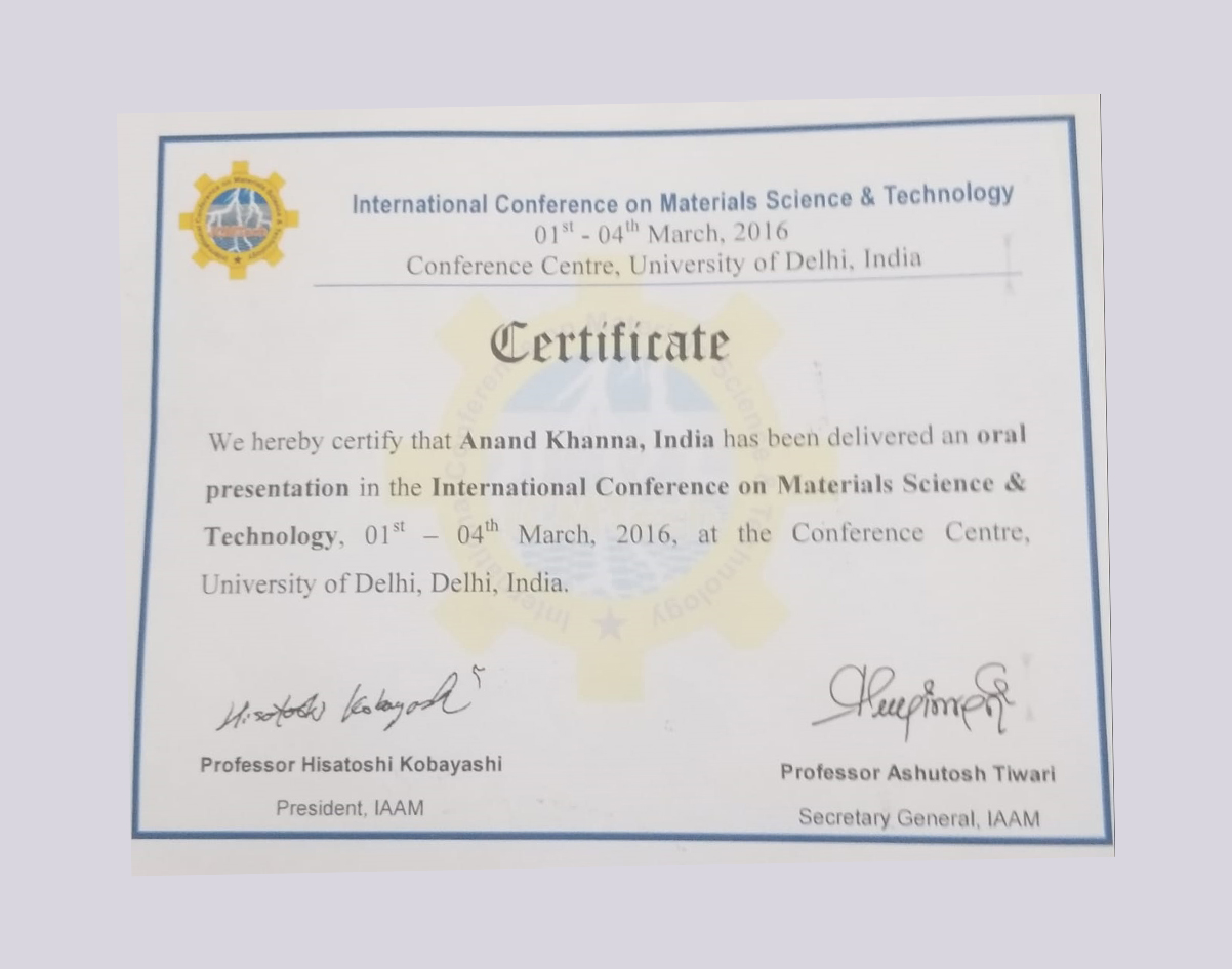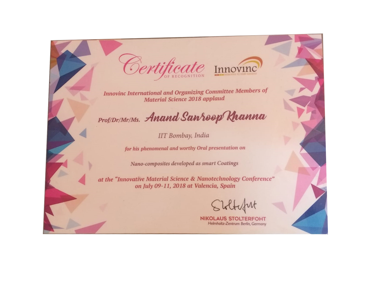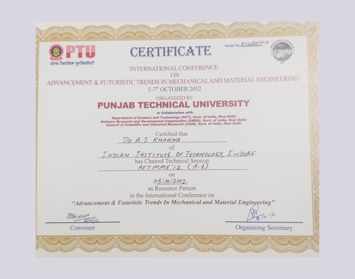 He is full Professor Since 1998. He just retired on June 30, 2018 and now involved in several consultancy and sponsored projects as Director of Surface Engineering and Coating Consultant Company Another achievement of Prof. Khanna is that out of 27 Ph.D’s he has brought atleast two of these works into two companies:
