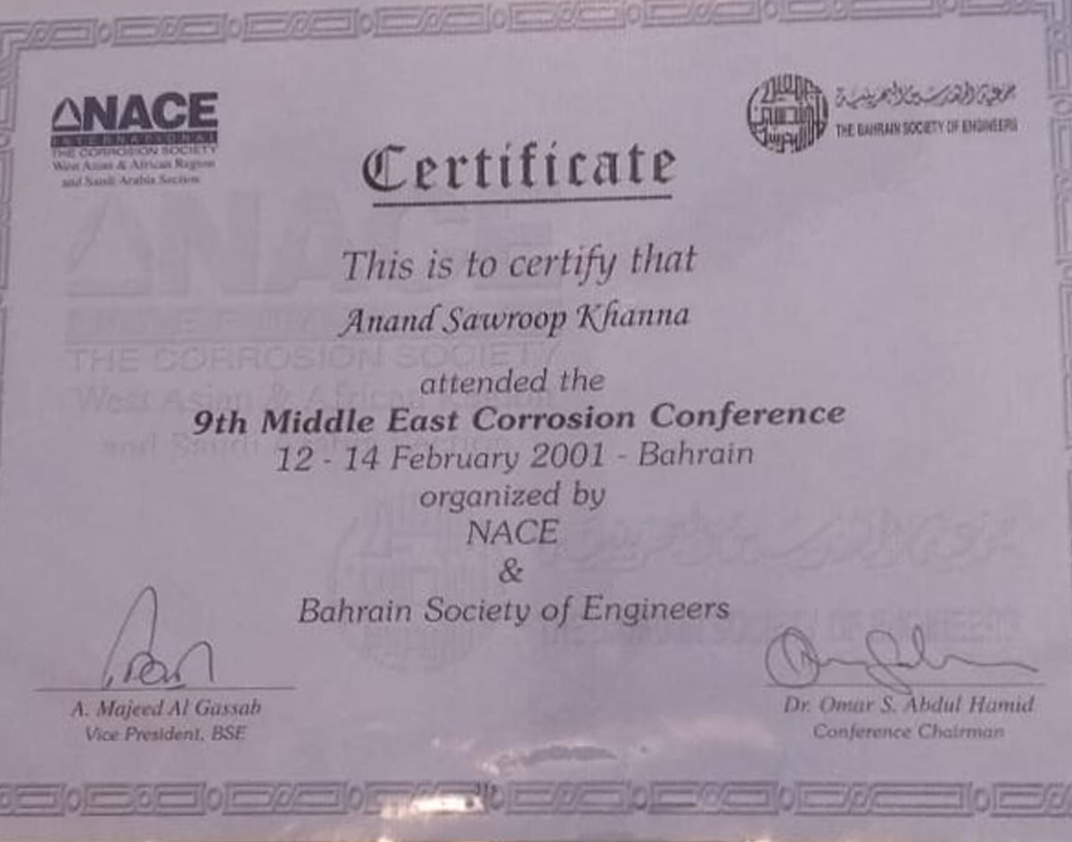 4 Corrosion Awareness Award NACE India Section 1997
