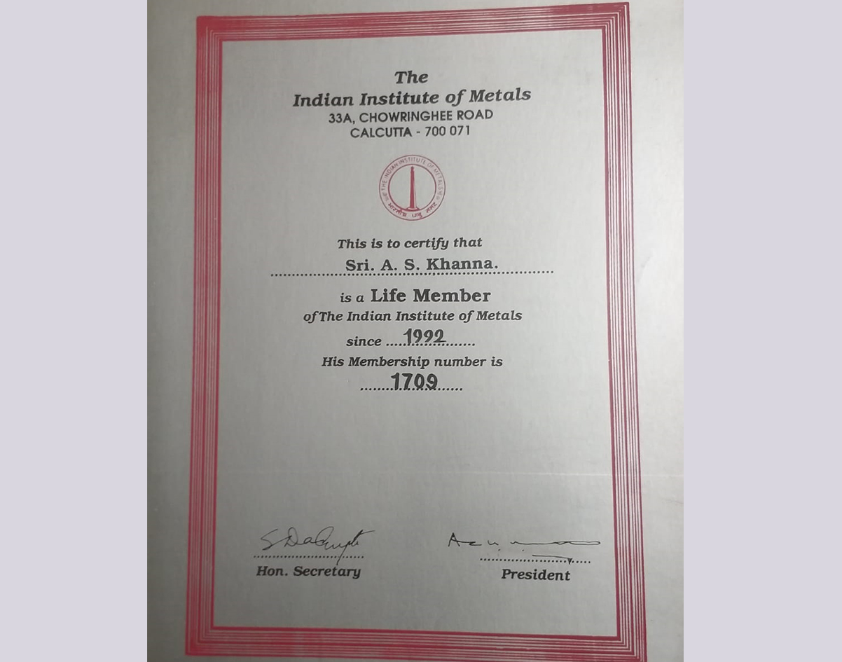 3 Indian Institute of Metals : Life member