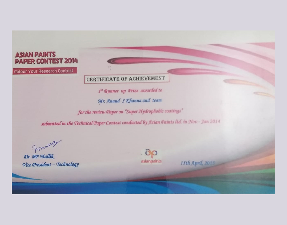 20 2014 Rajesh Kumar Development of Hydrophobic coating using functionalized pigments External - Industry