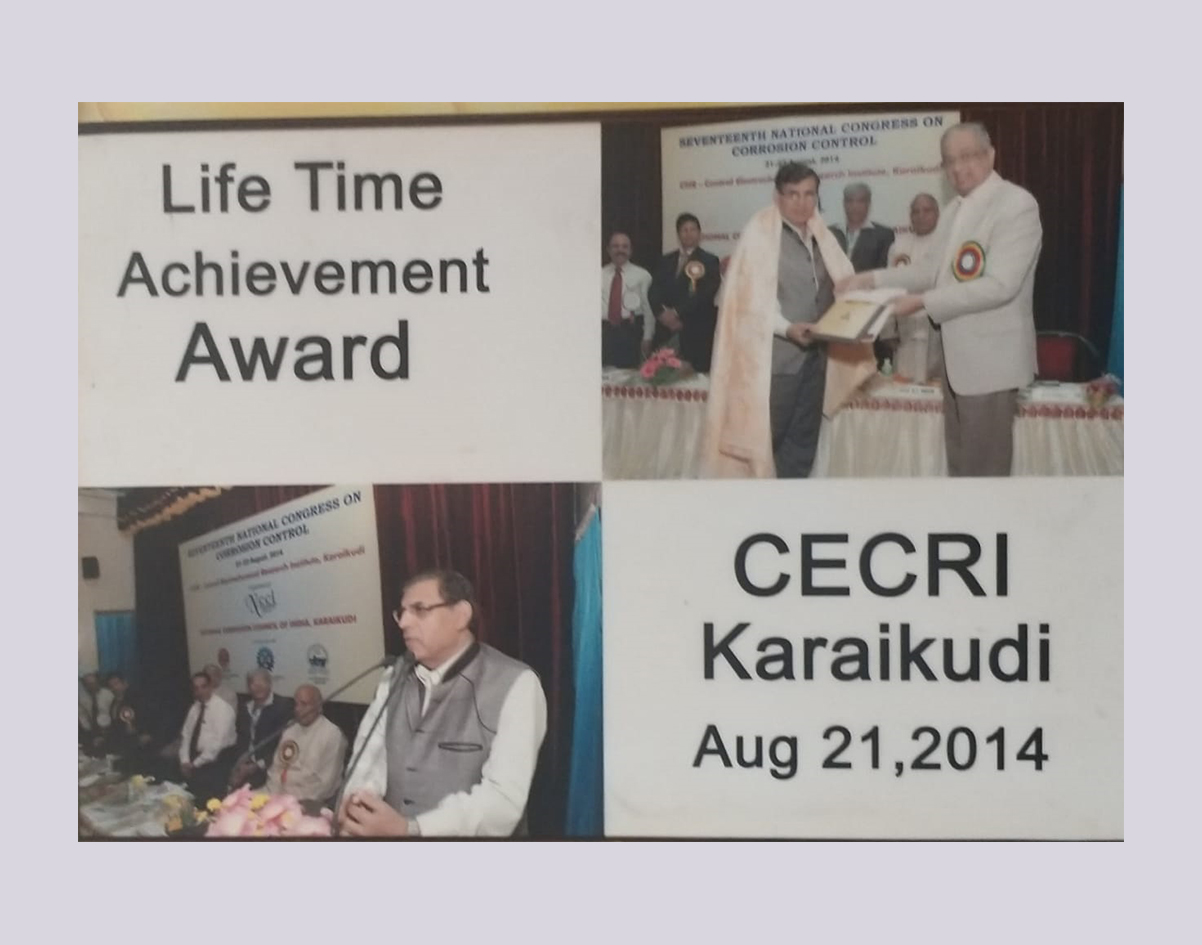9 Life Time Achievement award for 25 years Work in the field of Corrosion National Corrosion Council of India CECRI Karaikudi August 21, 2014